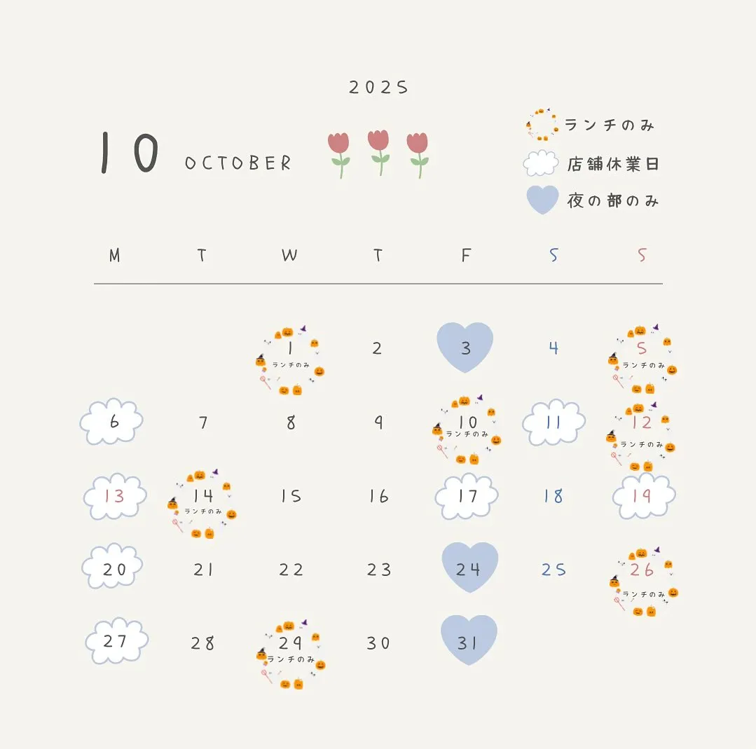 10月は以下のカレンダーの通り営業予定です!