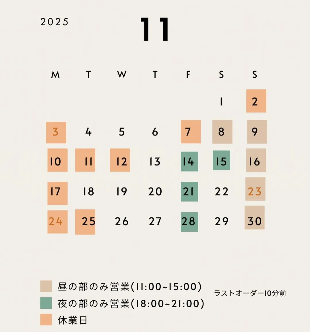 11月は以下のカレンダーの通り営業予定です!